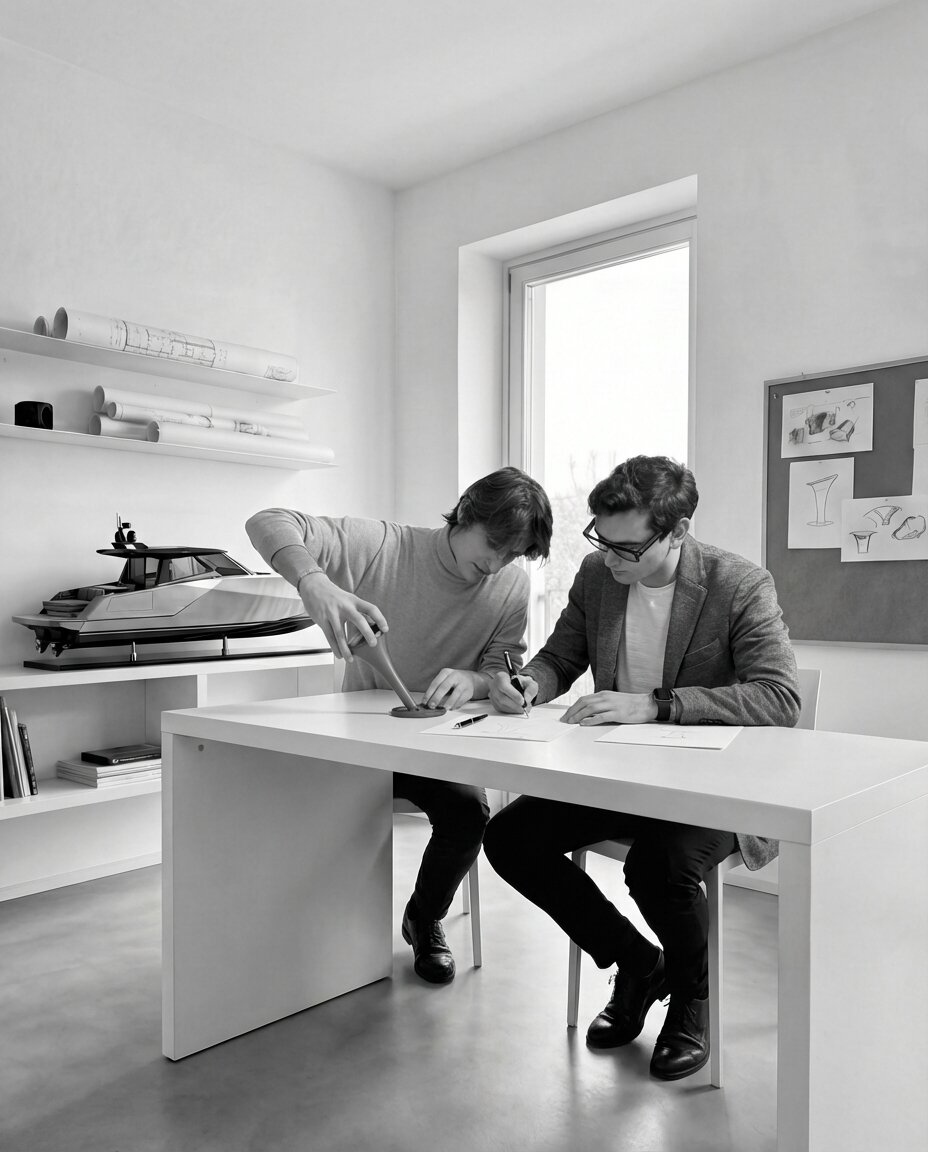Il rigore metodologico di Gabriele si integra con la sensibilità estetica e la costante ricerca materica di Tommaso, dando vita a progetti che nascono dall'ascolto attento delle esigenze di chi li vivrà. È questa fusione tra rigore architettonico e passione per il design di prodotto a permettere ad ArcQua Lab di affiancare cantieri e armatori in un percorso sartoriale, nel quale la massima cura del dettaglio definisce un'identità autentica, capace di tradurre ogni visione progettuale in un'esperienza tangibile.